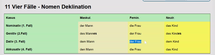 - Nominativ: Wer / Was? (Subjekt des Satzes / Handelnde Person).