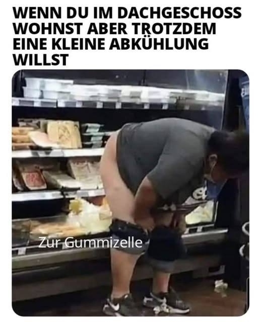 ..wegen 35°C im Schatten. - Ja, dann geht halt nicht in den Schatten, ihr dummen Säue!