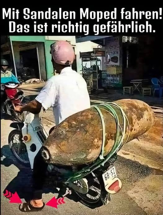 Mit Sandalen Moped fahren! Das ist richtig gefährlich.