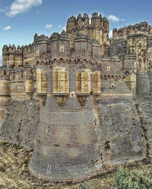 in Zentralspanien ist ein atemberaubendes architektonisches Meisterwerk aus dem 15. Jahrhundert. Diese Festung wurde von einem maurischen Architekten entworfen – eine übliche Praxis im Mittelalter – ist eine bemerkenswerte Mischung aus spanischem Mudejar-Mauerwerk und gotischen Elementen. Seine komplizierten Ziegelmuster, geometrische Entwürfe und ornamentale Details zeigen die einzigartige Verschmelzung islamischer und christlicher künstlerischer Traditionen, die den kulturellen Austausch der Zeit widerspiegel