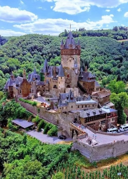 Das ursprüngliche Cochem Castle, das auf einem Hügel 300 Fuß über der Mosel lag, diente dazu, Maut von vorbeifahrenden Schiffen zu erheben. Die moderne Forschung datiert ihren Ursprung auf etwa 1100.