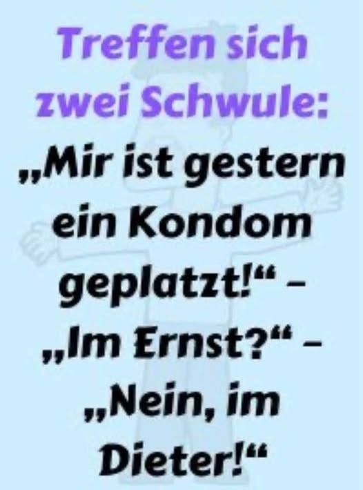 ,,Mir ist gestern ein Kondom geplatzt!" - ,,Im Ernst?" - ,,Nein, im Dieter!"