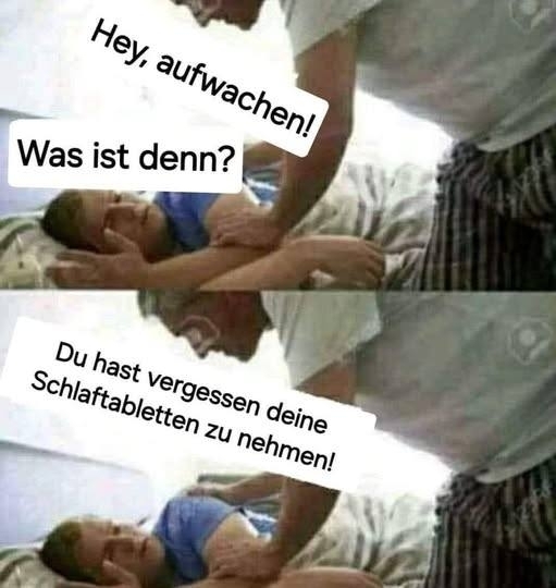 - Du hast vergessen deine Schlaftabletten zu nehmen!