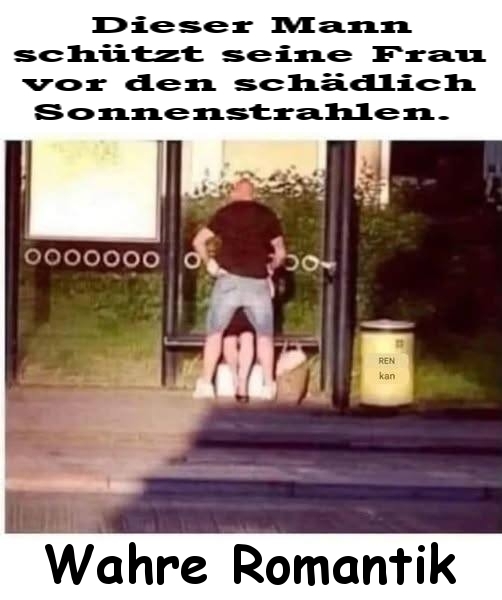 schützt seine Frau vor den schädlich Sonnenstrahlen.