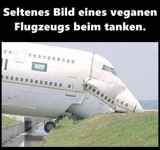 Seltenes Bild eines veganen Flugzeugs beim tanken.